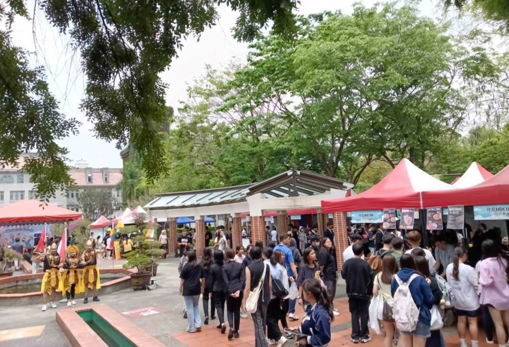 為積極營造多元學習環境,促進跨文化交流,朝陽科技大學今(29)日起至5月1日舉辦「國際文化週」,吸引來自28個國家的境外生熱情參與。現場除了安排大洋洲吐瓦魯及印尼精彩的迎賓舞蹈外,國際學生也準備各式美食,包括巴基斯坦三角餃、蒙古鹹奶茶、印尼花生沙嗲、越南斑蘭玉米奶及糯米冰淇淋等傳統家鄉美食供師生品嚐,校園裡充滿濃濃的異國風情。