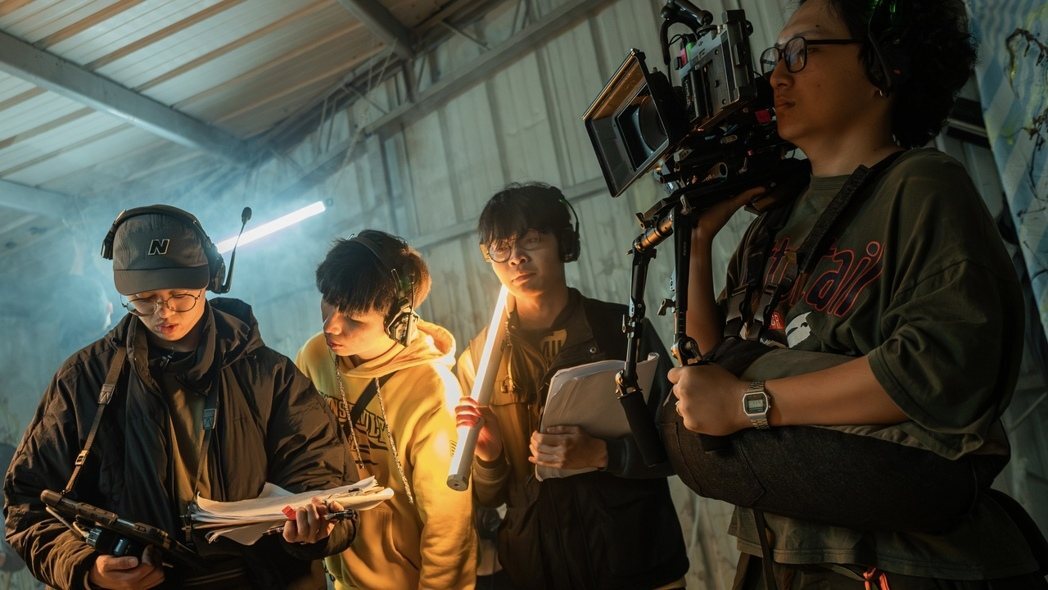 劇情片《最後一單》學生導演林川源(左二),日前以作品《人道》勇奪第8屆青春有影大學盃微電影競賽創意短片組金獎,展現專業實力。朝陽科大/提供