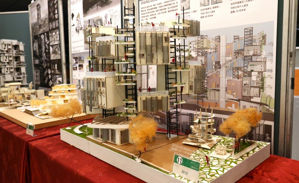 朝陽科技大學建築系蔡明宇與黃博凱以作品「歸途」榮獲室內設計組金獎。團隊運用貨櫃單元進行模組化設計,強調空間的彈性與可移動性,營造能促進人際交流的共享場域,評審一致肯定作品巧妙融入苗栗「客家圓樓」的聚落精神,展現深刻的人本思維與空間洞察。
