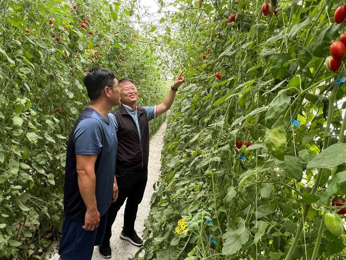 麥寮管理部副總經理蔡建樑表示,台塑企業與朝陽科大農業輔導團隊在麥寮許書賓農友田區今年再次辦理田間觀摩會。當時向大家介紹熊蜂,透過熊蜂授粉,減少人力資源投入,也讓小番茄的著果率比人工著果效果來的好,所以已經陸續有農友採用熊蜂授粉的技術方式熊蜂是小番茄授粉的重要幫手,能提高果實品質和產量。但今年氣候異常炎熱,導致熊蜂有畏熱且工作效率低落的情形,經輔導團隊與許書賓先生共同檢討試驗後,發現可透過控制環境溫度和濕度、定期檢查和清潔蜂箱及提供足夠的食物等作法,確保雄峰授粉效率。故再次請許書賓先生在現場跟各位農友分享及技術經驗。另外,輔導團隊也安排陳本源專家針對溫室內小果番茄品質提升的技術,與大家分享,期待大家都可以一起精進技術,提升產量及品質