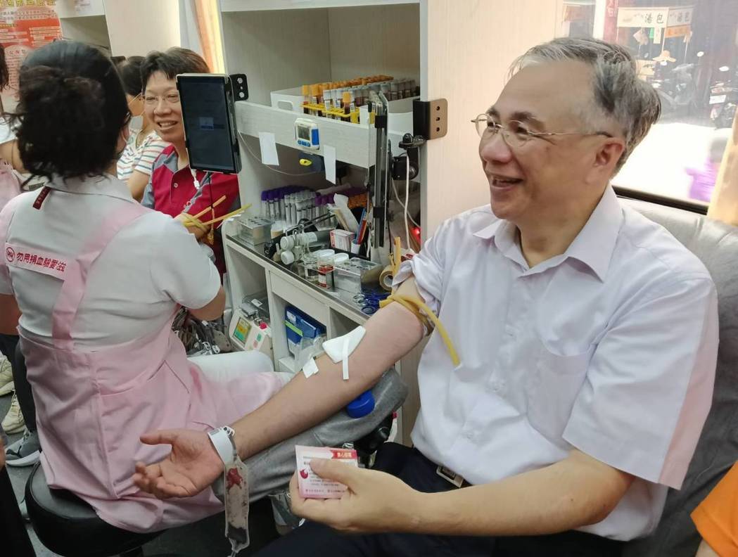 朝陽科大校長鄭道明愛心滿滿,挽袖捐血500毫升。楊聰橋/攝影