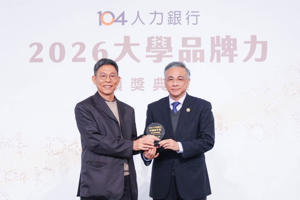▲ 朝陽科大勇奪2026大學品牌力全台私立科大之冠,由校長鄭道明(右)代表領獎。