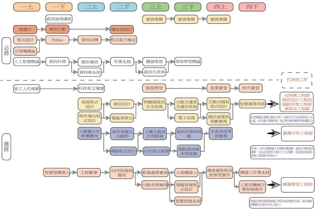 朝陽科大資訊工程系人工智慧組課程地圖及職涯規劃。(圖/朝陽科技大學資訊工程系提供)