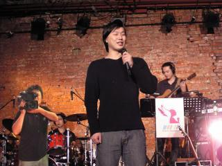 ●傳播藝術系進修部應屆畢業生蘇志惠等7人,以盲人歌手蕭煌奇(圖中)為主角拍攝紀錄片【奇遇】,榮獲2006年台灣青年音像創作紀錄片類組金獎。