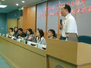 ● 師資培育中心邀請優秀校友回娘家座談,主任林以凱(右一)在致詞時表示,該中心近3年的畢業生就業率,中教學程達55%,幼教學程更超過80%,此一傲人之就業成績,甚至比國立大學還高。