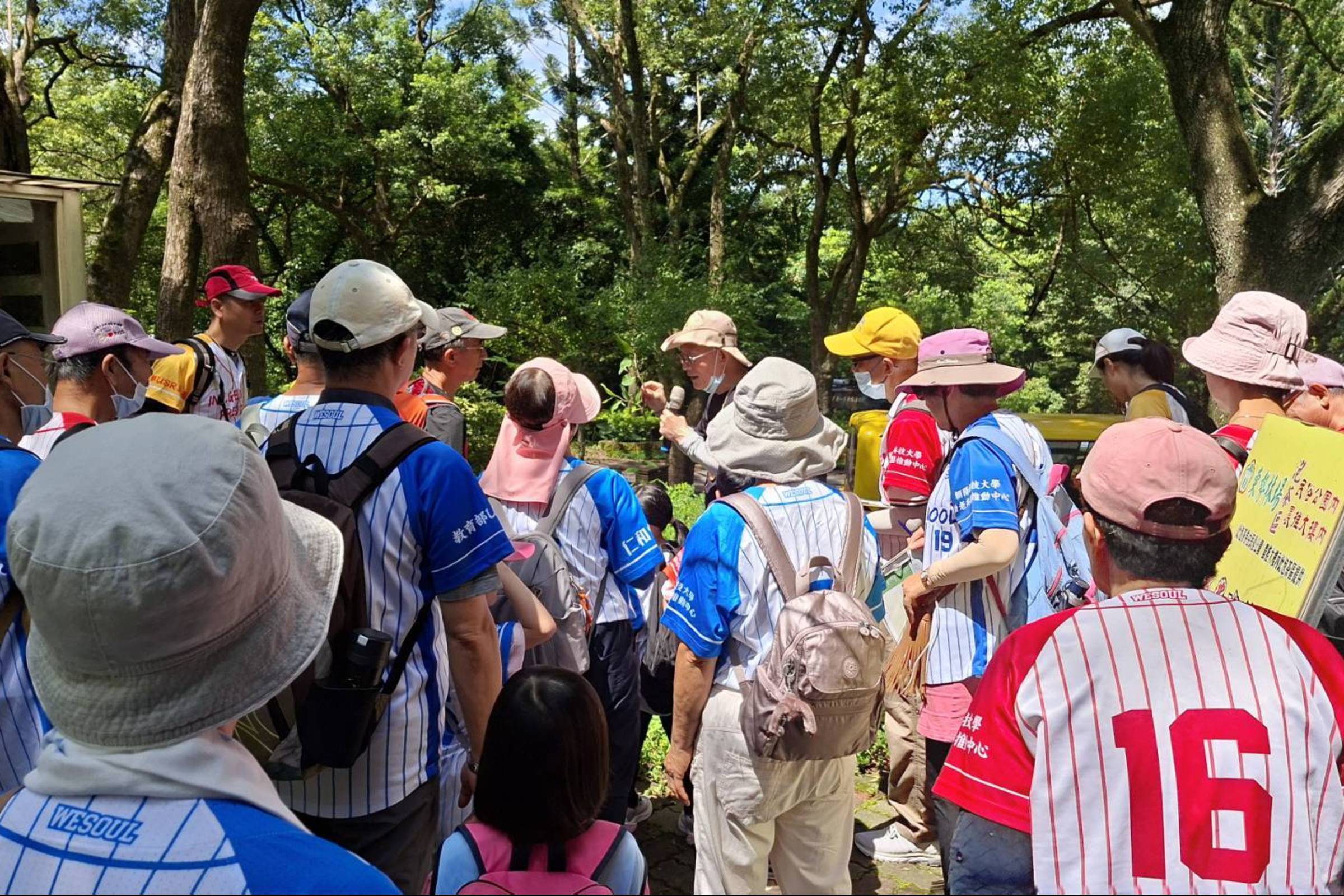 學員們跟隨導覽志工「黑熊」踏查林場