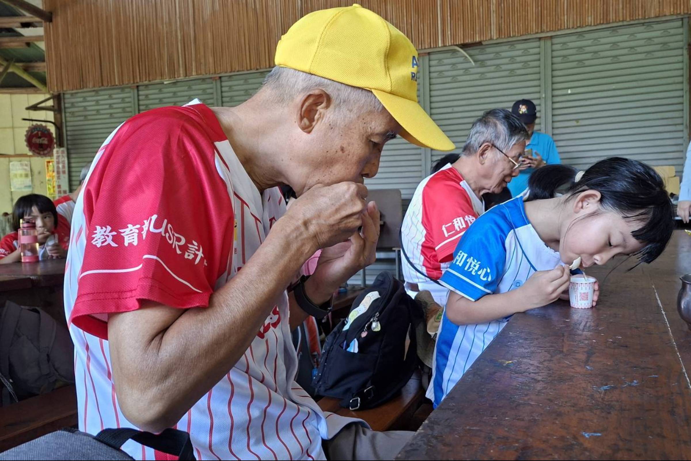 學童與長者一同食用野菜果凍