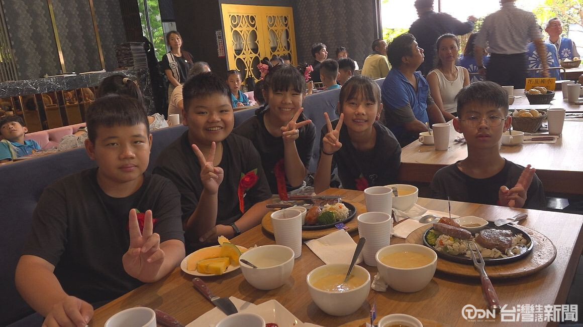 圖為邀請坪頂和永和國小師生享用大餐/記者林妤昕攝