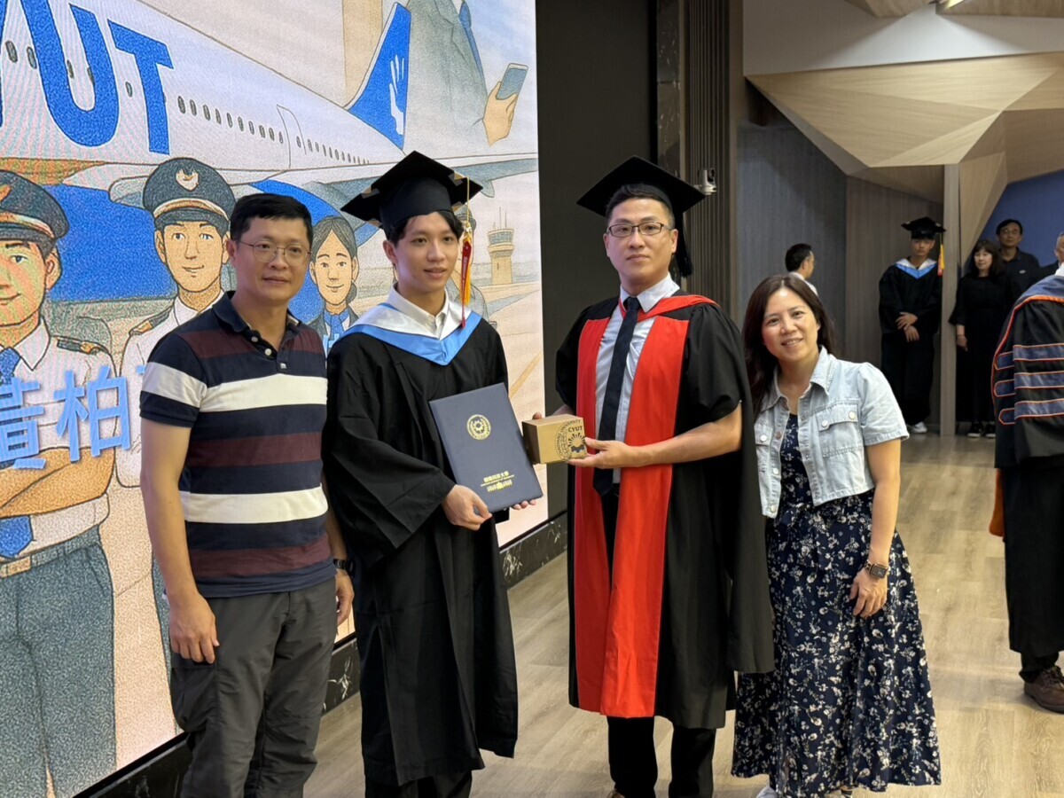 為了籌辦這場畢業單飛儀式,飛航系全系師生動員,除了現場布置滿滿航空元素,合唱曲〈驪語〉更是由系主任盧衍良親自填詞譜曲,讓與會家長深深感動。他用歌詞勉勵所有的畢業生,朝陽科大的畢業證書,就是一張終生保固證明,祝福飛航系畢業學子都能勇敢追夢,攜手共創航空新局。