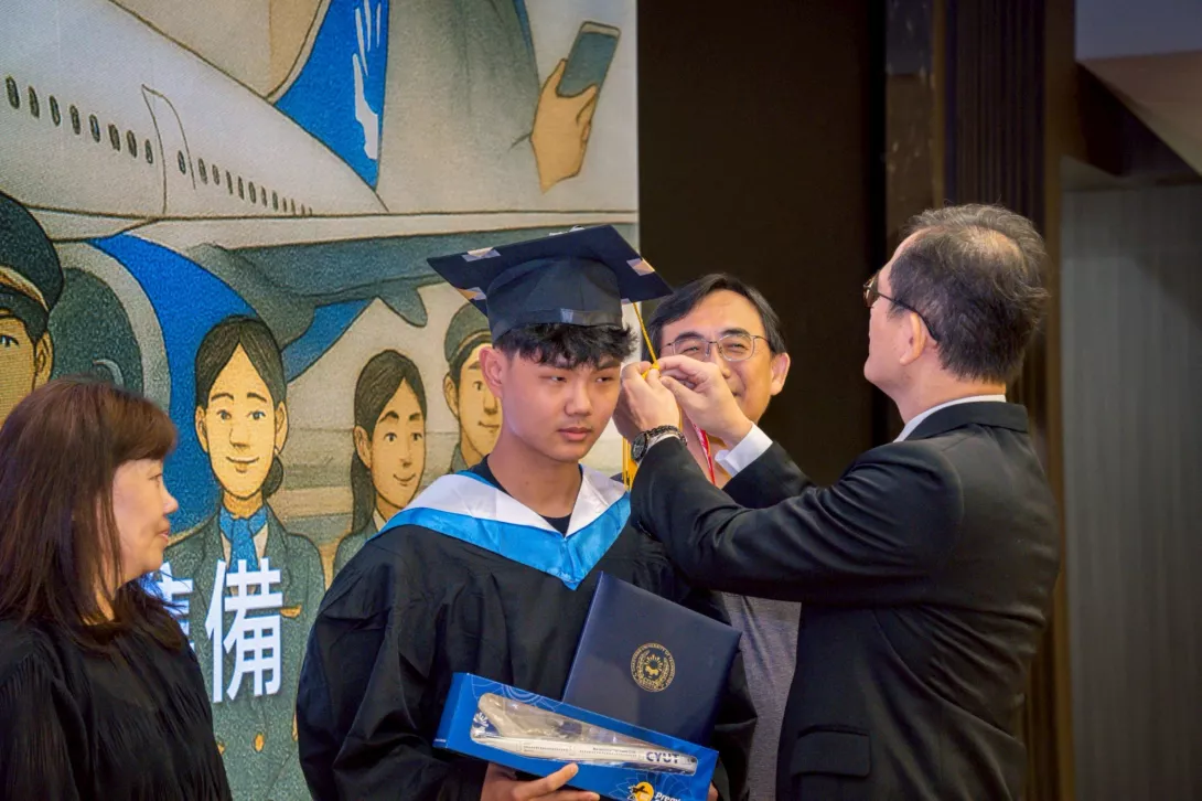 ▲飛航系透過單飛儀式,祝福每一位畢業生都能展翅翱翔,再創航空新局。