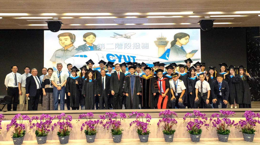 ▲朝陽科大為首屆飛航系畢業生舉辦畢業單飛儀式,場面溫馨。