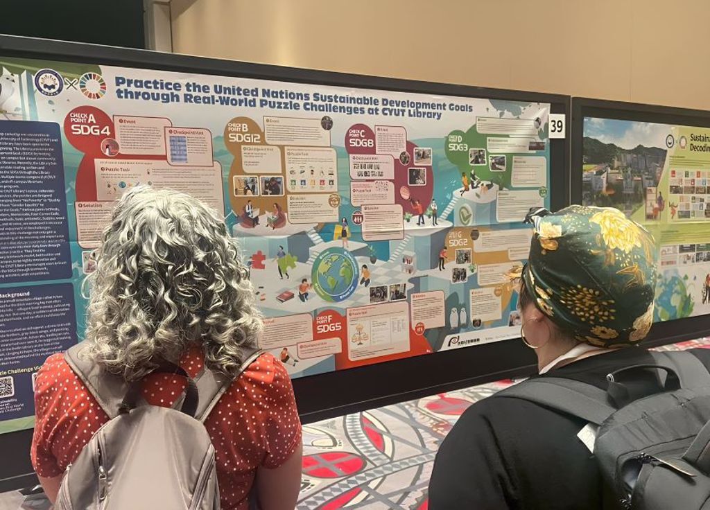 ALA年會是全球圖書資訊領域三大國際盛會之一, 今年於美國費城舉辦, 吸引數千位來自世界各地相關專業人士參加。朝陽科大圖書館入選之兩件主題海報,其一介紹圖書館如何以實境解謎挑戰的形式,透過結合空間、資源與遊戲化學習方式,將「消除貧窮」、「優質教育」、「性別平權」、「夥伴關係」等SDGs主題融入謎題設計,包含書籍索書號、摩斯密碼、中文輸入法、影像辨識、AI語音等多元形式,激發參與者的學習動機與思辨力。另外一件入選海報則以圖書館內設立之「SDGs永續閱讀區」為主軸,以主題書展、指標概念介紹與國際成果展示,引導讀者從閱讀出發,深入理解永續發展的核心理念,並將圖書館空間轉化為實踐全球議題的知識場域,促進與國際之互動合作。