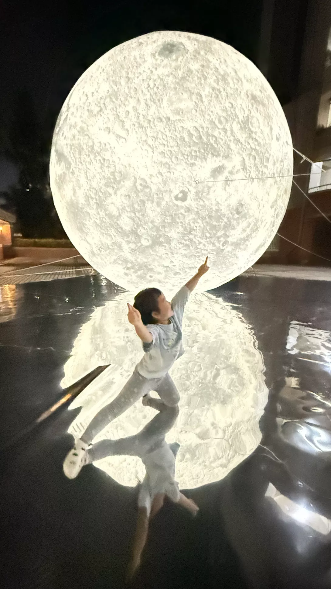 入夜之後,巨型月球球體散發溫暖光芒,成為中秋應景的打卡熱點。