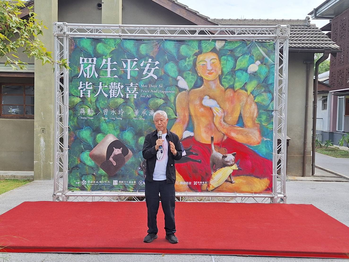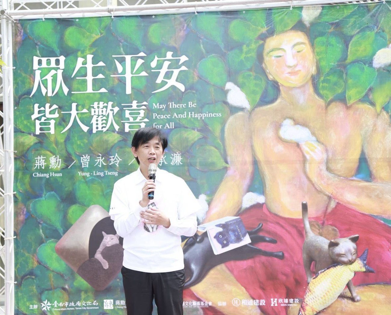 臺南市副市長葉澤山表示,感謝蔣勳文教基金會與和通文化藝術基金會攜手,推動水交社文化園區日式宿舍常設展的規劃與內容提升,也感謝蔣勳老師提供珍貴作品。本次以「眾生平安,皆大歡喜」為展名,滿是貓咪的創作令人會心一笑,深具療癒氣息,搭配AI互動體驗,使整體展覽既溫暖又新穎。誠摯邀請全國民眾走進臺南,在靜謐的書房中,感受三位藝術家的創作魅力,也感受臺南文化底蘊與水交社之美。