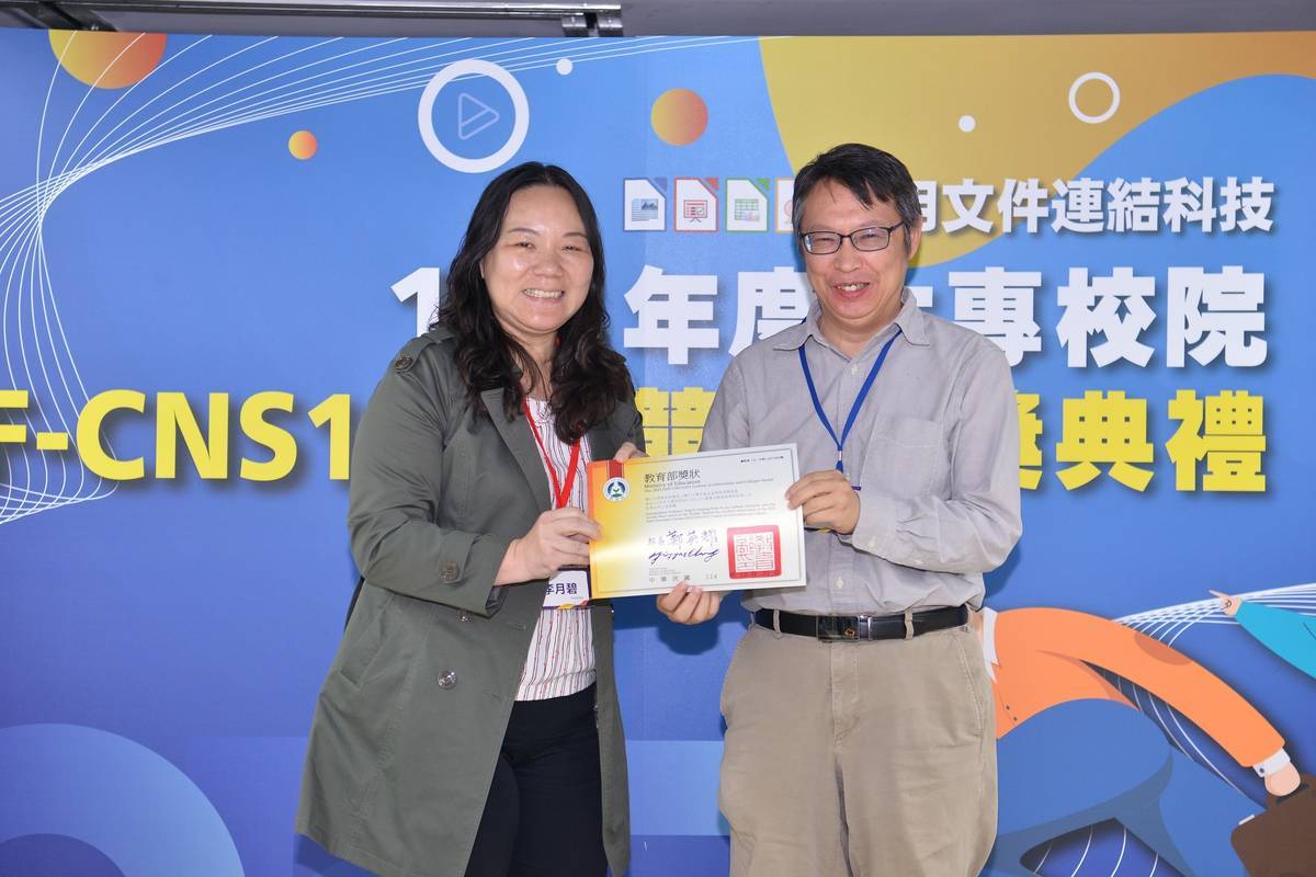 李月碧管理師頒發教師組第二名 (教育部提供)